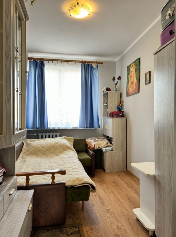 Lokal mieszkalny składa się  z trzech oddzielnych pokoi, jasnej kuchni, łazienki z WC oraz korytarza. Do nieruchomości przynależy piwnica.